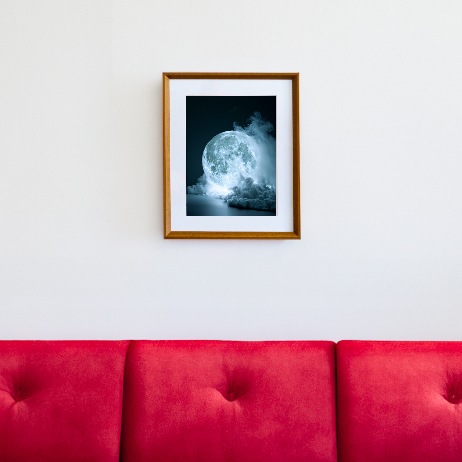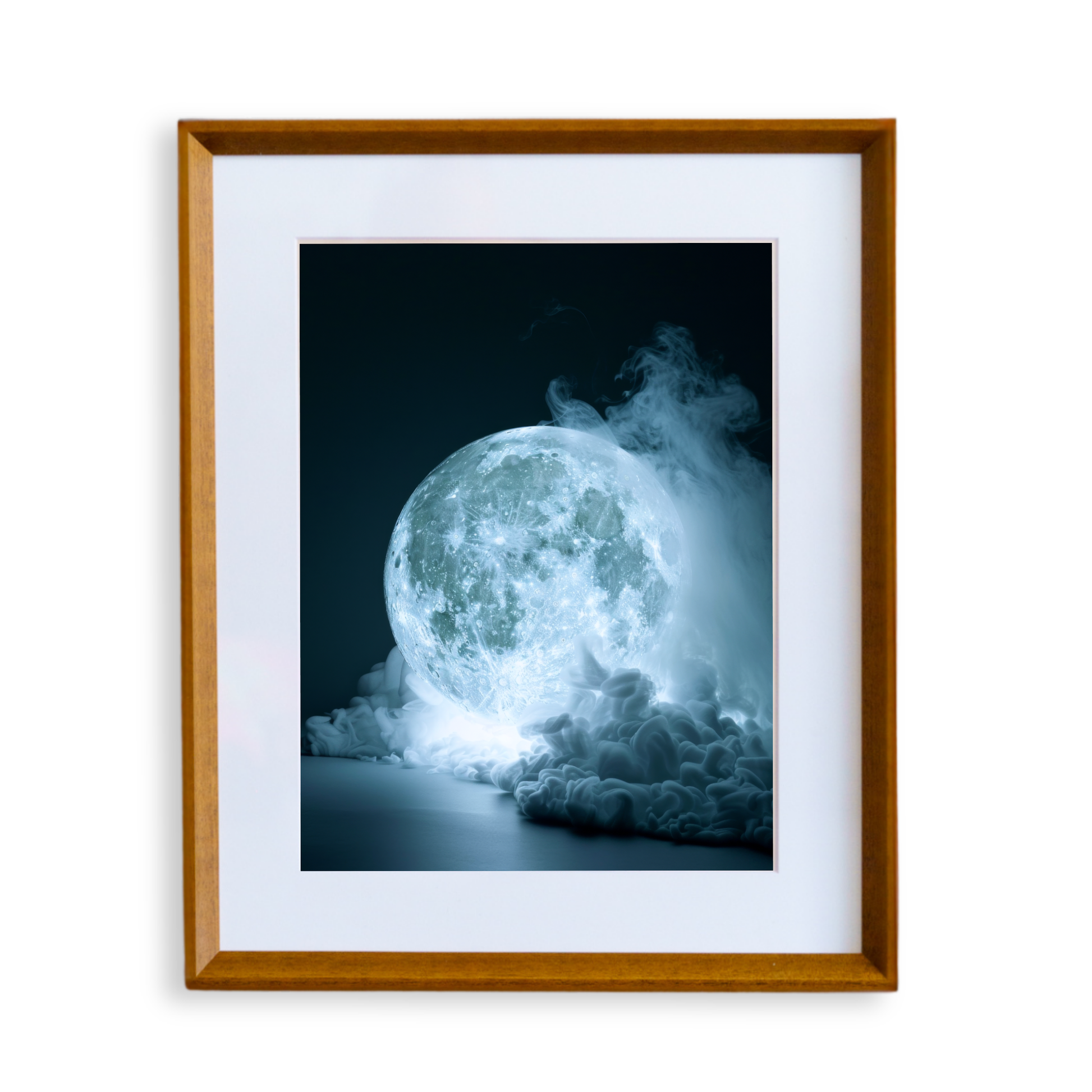 A celestial body draped in vapor, Midnight Surface suspends the viewer in a world just beyond reason. Soft, luminous, and impossibly close, it captures the moon not as an object — but as a feeling: weightless, mysterious, and quietly powerful.